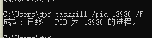 taskkill /pid 对应pid /F 或者 taskkill -pid 对应pid -f