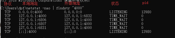 netstat -nao | findstr “端口号”