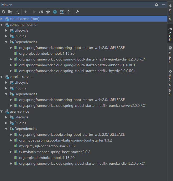 <parent> <groupId>org.springframework.boot</groupId> <artifactId>spring-boot-starter-parent</artifactId> <version>2.0.1.RELEASE</version> <relativePath/> </parent> <properties> <spring-cloud.version>Finchley.RC1</spring-cloud.version> </properties> <dependencyManagement> <dependencies> <!-- springCloud --> <dependency> <groupId>org.springframework.cloud</groupId> <artifactId>spring-cloud-dependencies</artifactId> <version>${spring-cloud.version}</version> <type>pom</type> <scope>import</scope> </dependency> <dependencyManagement>2.父项目没有写对应版本