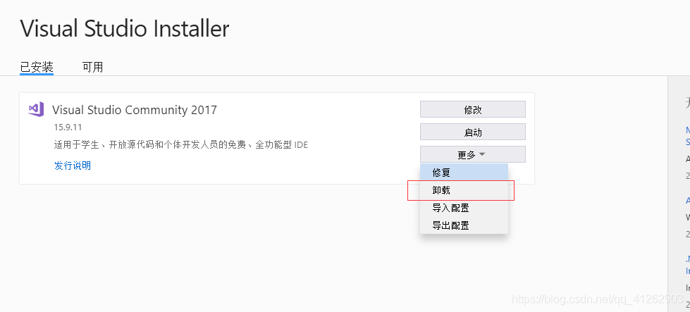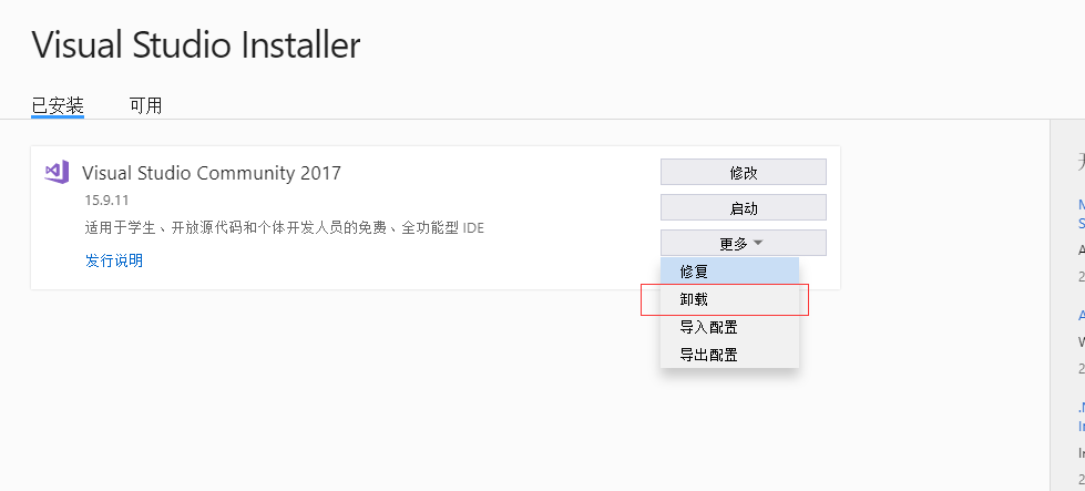 Visual Studio 2017/2019卸载教程