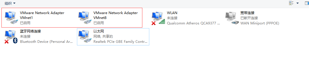 Windows对应以太网,前面两个是虚拟机的,对应上图仅主机跟NAT方式连接