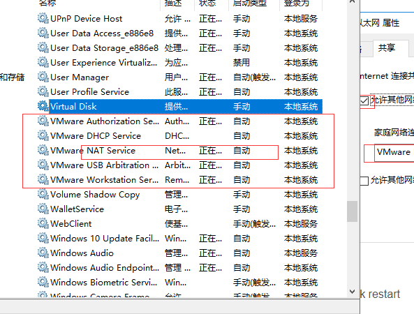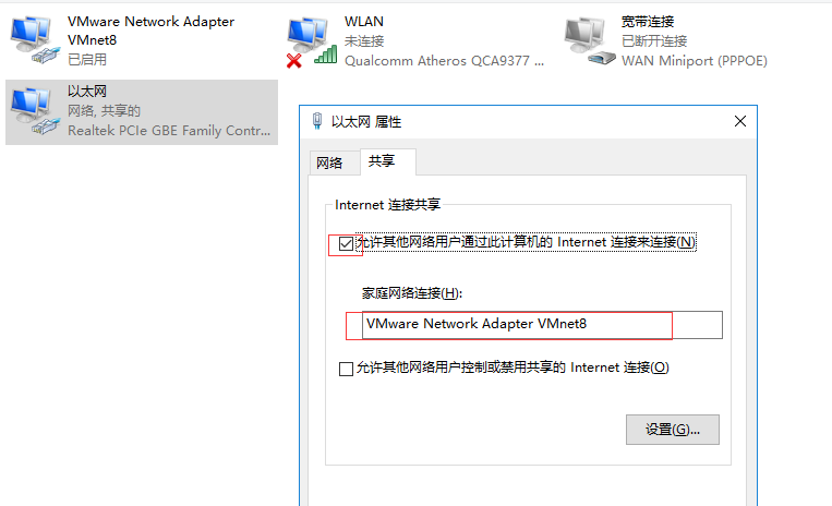 搞清楚了你的连接方式对应的以太网连接名称之后,你就可以开启对对应以太网的共享,我的是NAT连接方式,所有对vm8进行共享