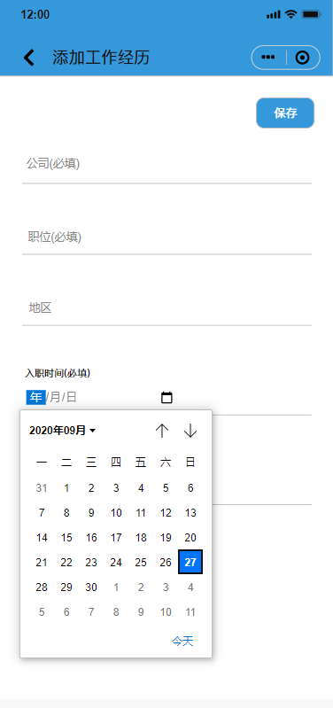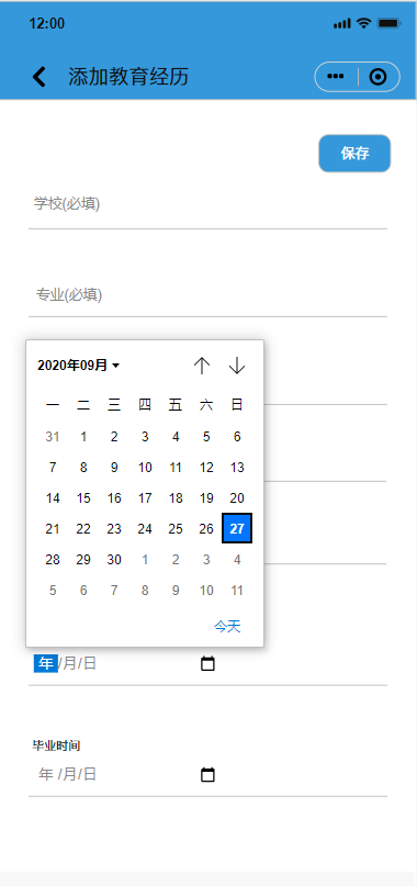 - 入学时间同工作经历的入职时间一样可通过表单直接选择