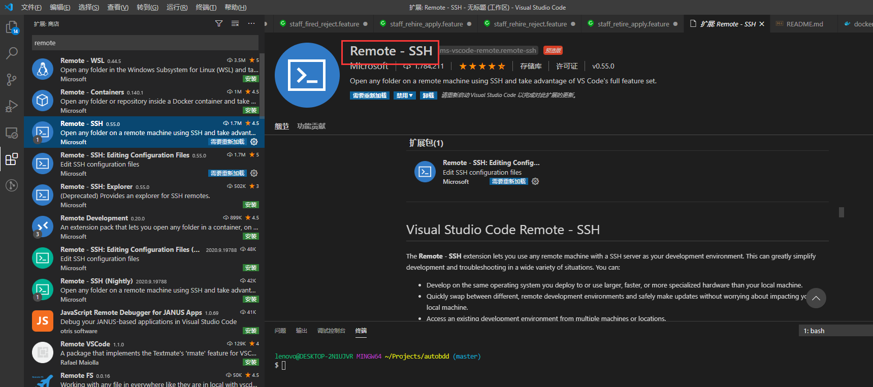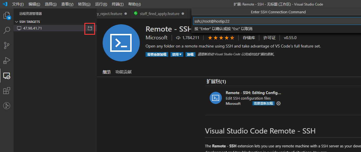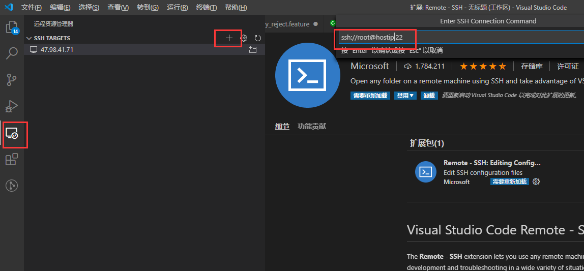 2.点击“+”,然后输入“ssh://root:ip:端口,回车。则可以看到终端已经被添加进来了。