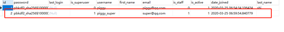 创建完成的用户存储在auth_user表之中, 对密码做了加密处理