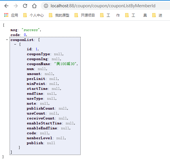 访问:http://localhost:88/coupon/coupon/couponListByMemberId