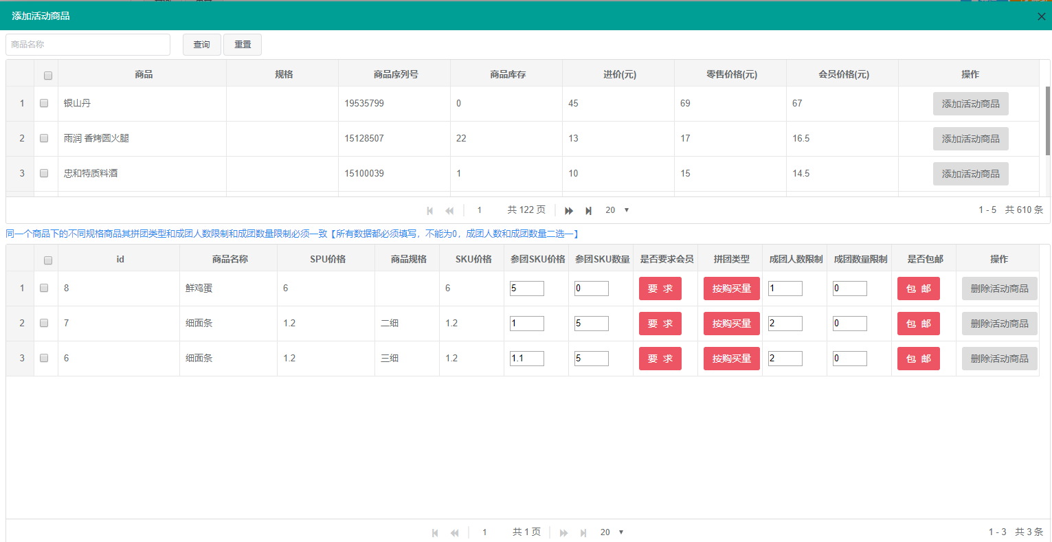 2、添加拼团活动商品
