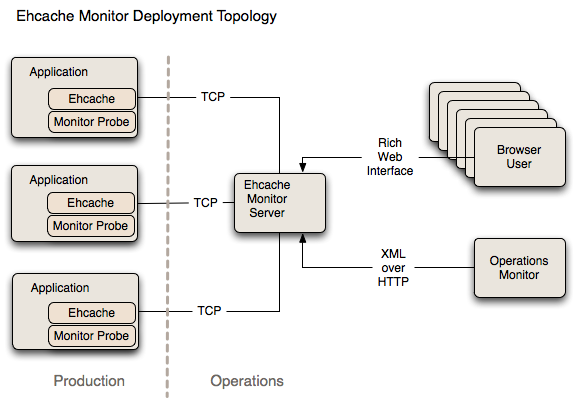 - 缓存服务端。Ehcache提供了一个Cache Server,一个war包,为绝大多数web容器或者是独立的服务器提供支持。