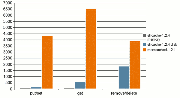 最后,关于Ehcache的性能比对,下面这张图来自Ehcache的创始人Greg Luck的blog:
