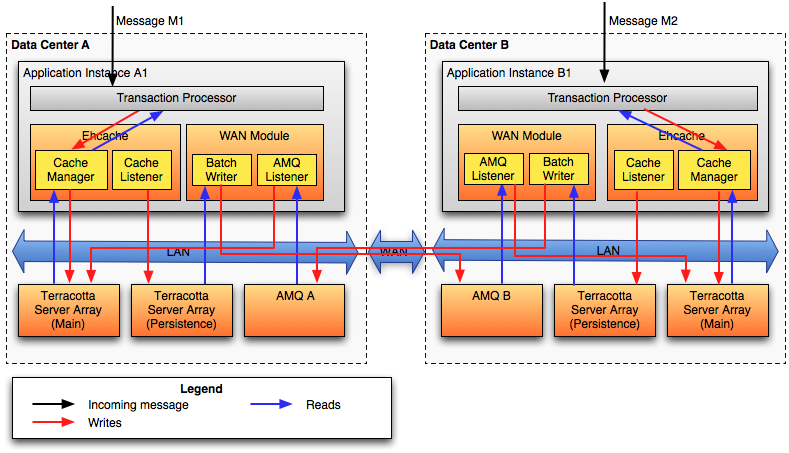 这种方案下,数据读取不需要经过WAN,写入数据时写入两份,分别由两个cache manager处理,一份在本地Server,一份到其他Server去。这种方案下读的吞吐量较高而且延迟较低;但是需要引入一个XA事务管理器,两个cache manager写两份数据导致写开销较大,而且过WAN的写延迟依然可能导致系统响应的瓶颈。