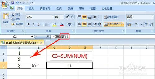 直接使用=sum(NUM) ,等价于sum(A1:A3)。