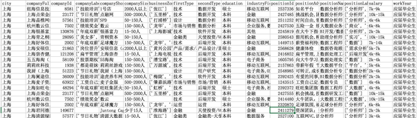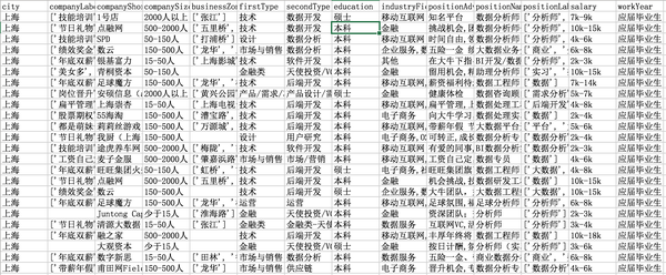 数据基本涵盖了职位分析的所需。职位中的职位描述没有抓下来,一来纯文本不适合这次初级分析,二来文本需要分词以及文本挖掘,后续有机会再讲。
