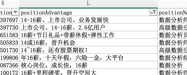 另外数据分析师的薪资,可能包括奖金、年终奖、季度奖等隐形福利。部分企业会在positionAdvantage的内容上说明,大家可以用筛选过滤出16薪这类关键词。作为横向对比。