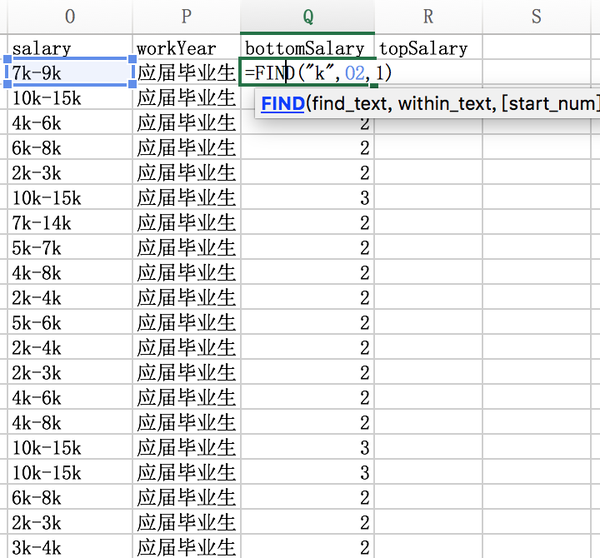 我们知道第一个k出现的位置,此时=LEFT(O2,FIND("k",O2,1))得到的结果就是 7K,要去除掉k,FIND("k",O2,1)再减去1即可。