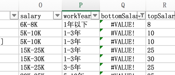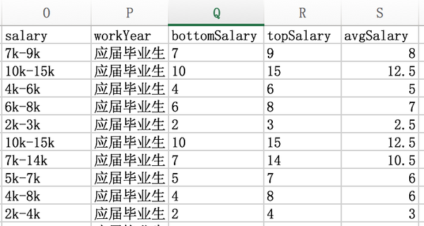另外还有一个错误是很多HR将工资写成5K以上,这样就无法计算topSalar。为了计算方便,将topSalary等于bottomSalary,虽然也有误差。
