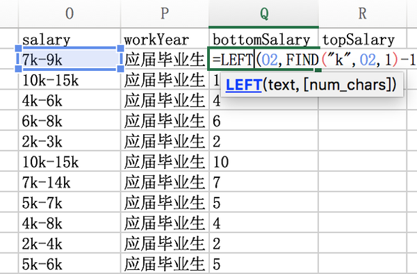 薪水的话用了几K表示,但这是文本,并不能直接用于计算。而且是一个范围,后续得按照最高薪水和最低薪水拆成两列。