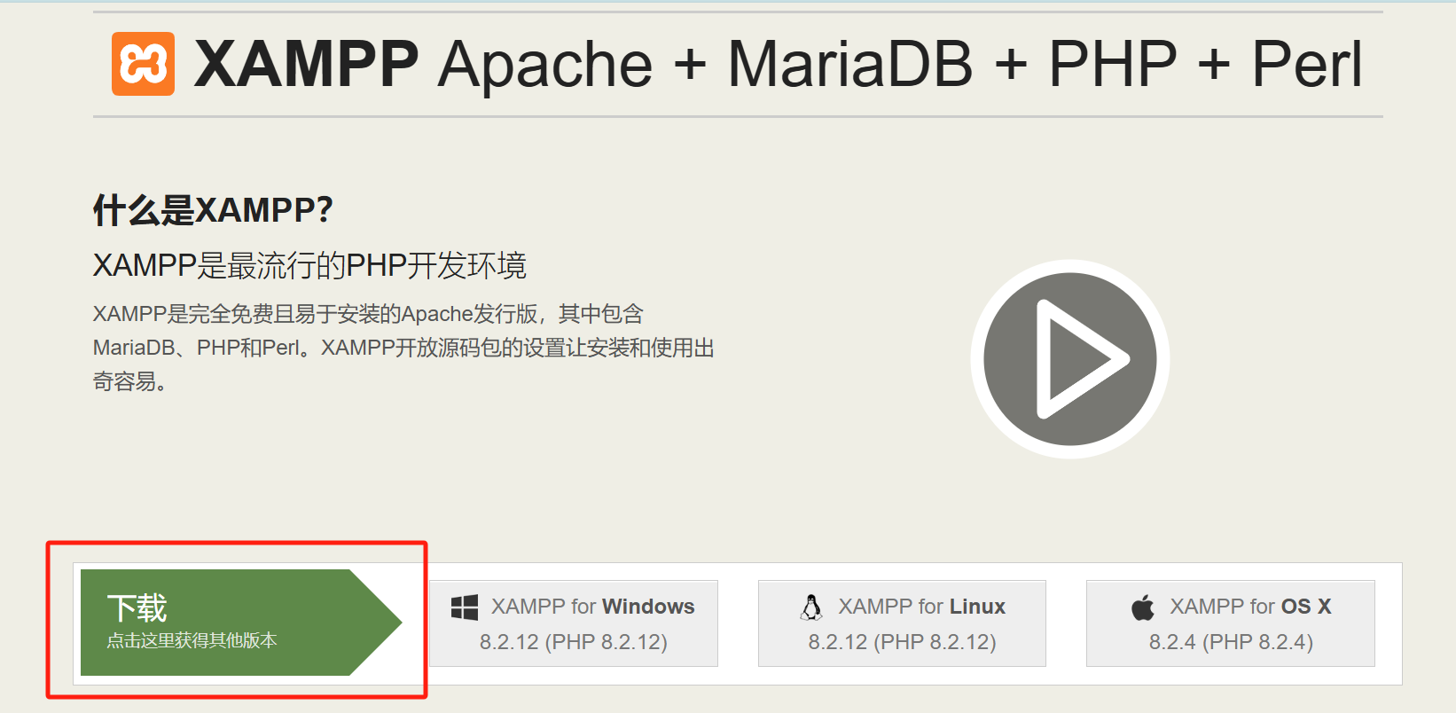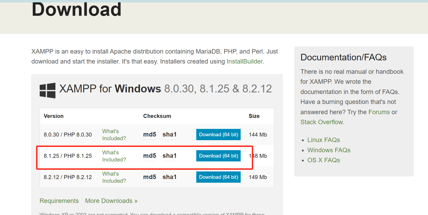 1.下载地址:XAMPP Installers and Downloads for Apache Friends