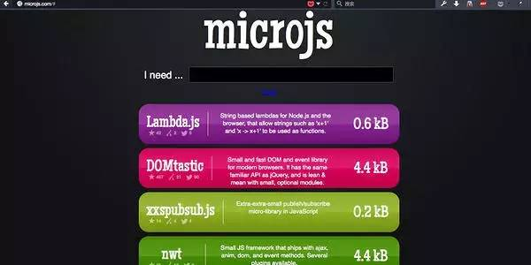 microjs 可以让你选择微型的js类库的网站,该网站里的库都是压缩后不大于5KB的,非常实用,该网站的资源都托管到了github。