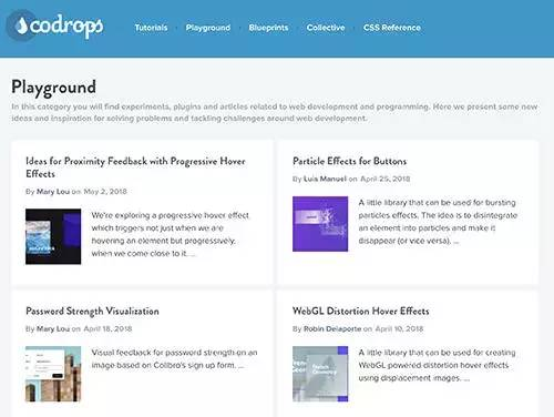 codrops 一系列具有相当具有创意且有趣的前端效果的集合,是非常棒的学习资料,可以欣赏和下载使用。并且有些项目,也托管到了github仓库中