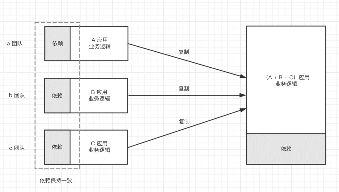 大型组织的组织结构、软件架构在不断地发生变化。移动优先(Mobile First)、App中台(One App)、中台战略等,各种口号在不断的提出、修改和演进。同时,业务也在不断地发展,导致应用不断膨胀,进一步映射到软件架构上。
