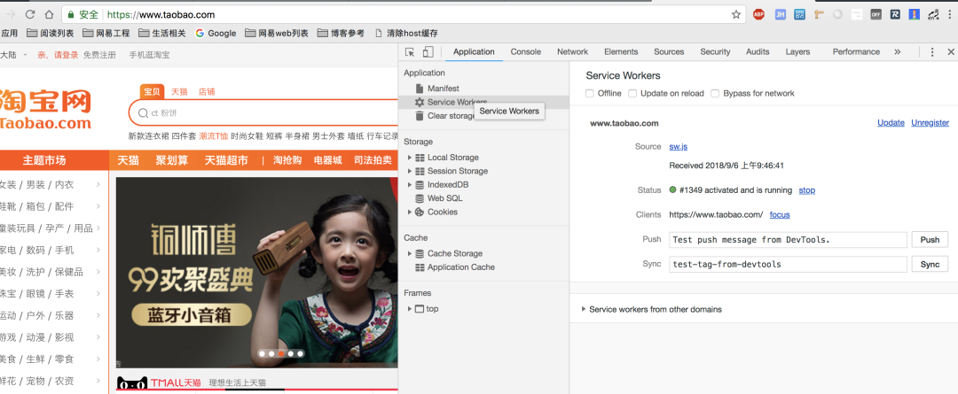 一个网站是否启用Service Worker,可以通过开发者工具中的Application来查看:
