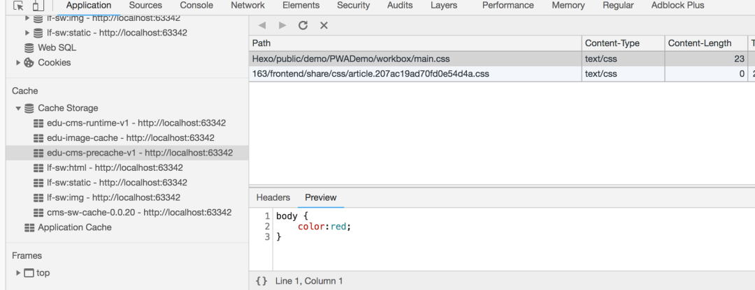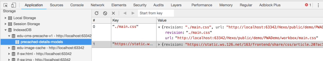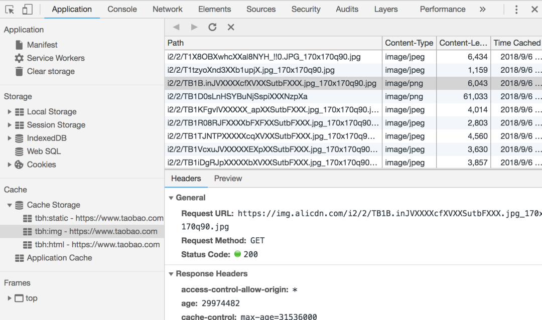 也可以在Application的Cache Storage中查看缓存的具体内容: