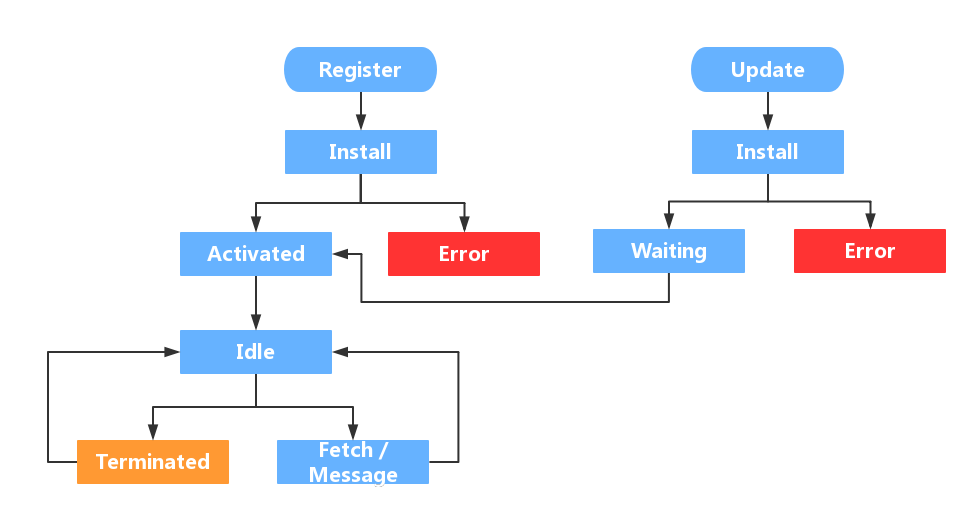 要使用Service worker,首先需要注册一个sw,通知浏览器为该页面分配一块内存,然后sw就会进入安装阶段。