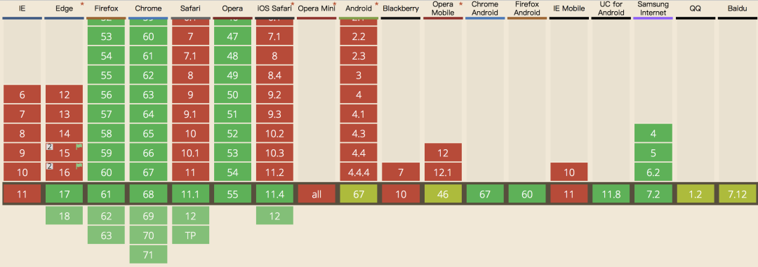 可以看到,基本上新版浏览器还是兼容滴。之前是只有chrome和firefox支持,现在微软和苹果也相继支持了。
