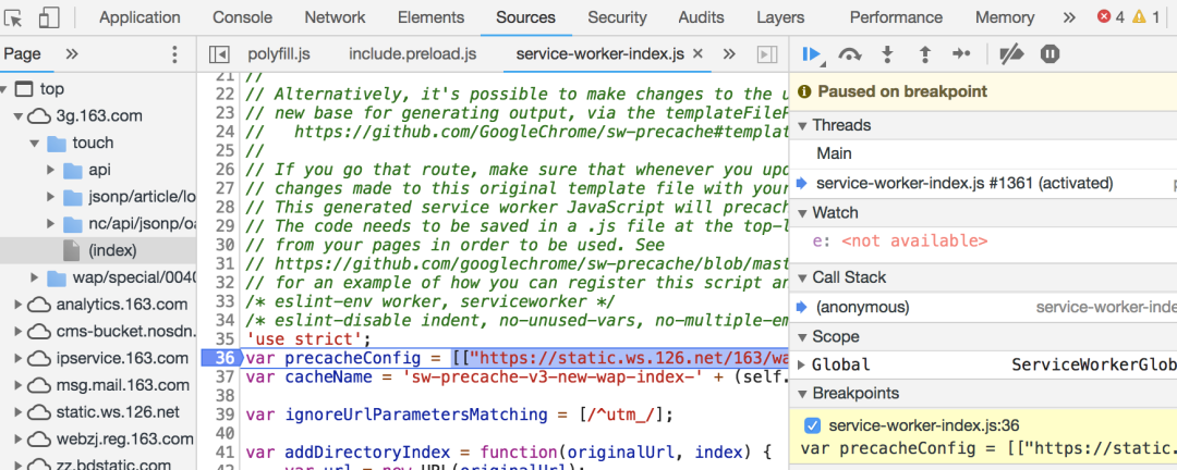 又到了举个栗子的阶段了,这次我们用淘宝好了,看看他们是如何通过workbox来配置serviceworker的: