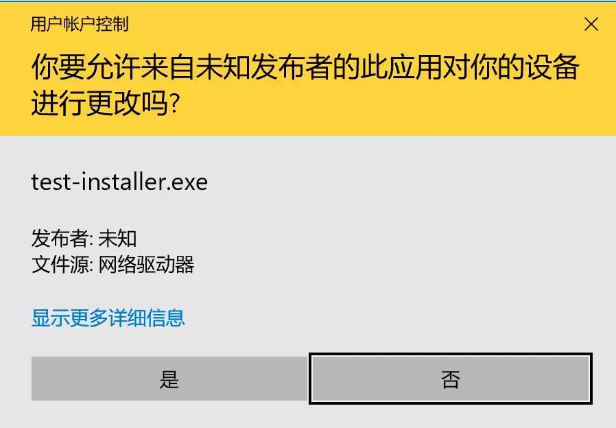 而当我们运行一个已签名的 exe 文件将会是正常的提示,如 Chrome 的提示: