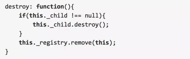 一般而言,destroy 方法最佳使用是在一个对象有一个明确的所有者来负责它的生命周期时。此情形常常存在于分层系统中,比如 MVC 框架中的视图或控制器,或者一个画布呈现系统的场景图。