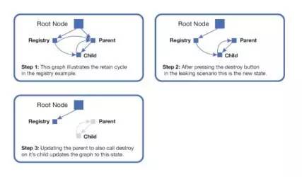 但是,如果引入了第三个保留该子对象的对象,该循环会导致内存泄漏。例如,创建一个 registry 对象,如清单 9 所示。