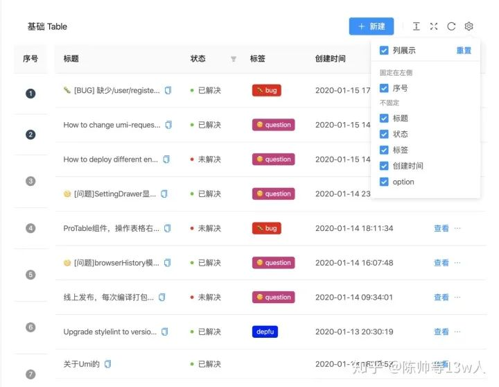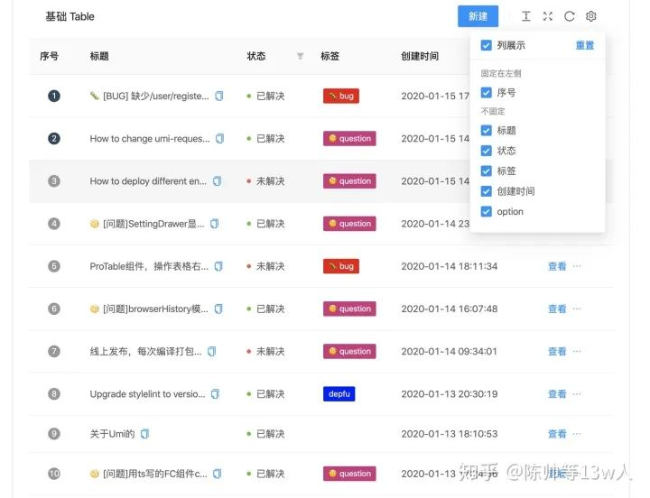 Table 现在也可以自动的获得宽度,并且拥有更加优秀的固定到侧边,已 Pro-Table[3] 为例,这里是 3.0 的 table。