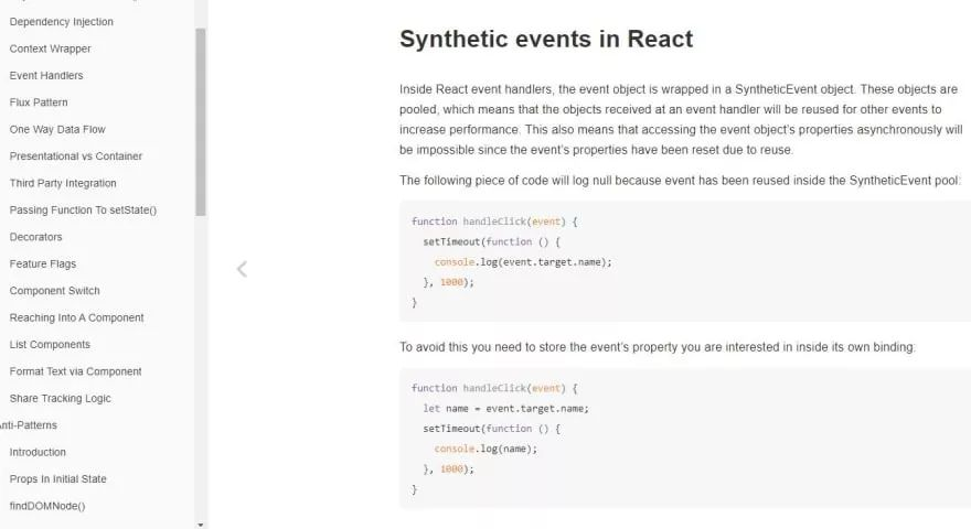 React bits(https://vasanthk.gitbooks.io/react-bits/)是 React 模式、技术、技巧和窍门的集合,所有这些都以类似在线文档的格式编写,大家可以在同一个选项卡上快速访问不同的设计模式和技术、反模式、样式、UX 变体以及其他有用的与 React 相关的材料。
