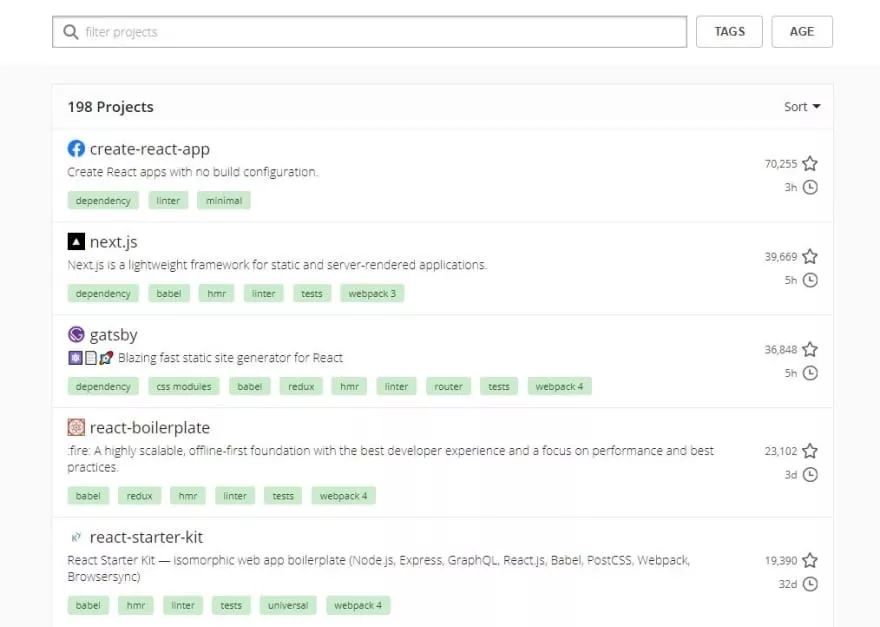 (https://url.leanapp.cn/DUi8AFk)是一个很棒的依赖库列表,我们可以在一个页面中查看全部项目。因此,如果我们觉得能同时快速查看到大量选项是非常有用的,那么这个很适合我们。