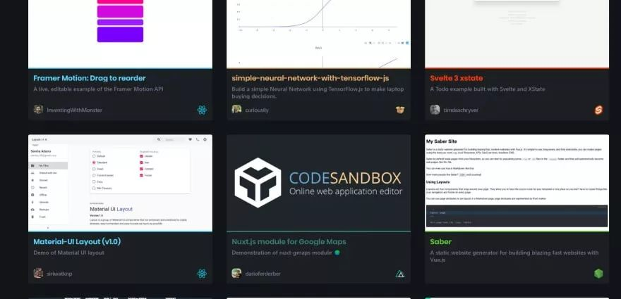 (https://codesandbox.io/)的工具是一个在线编辑器,我们从创建原型到 Web 应用程序部署 - 都可以在这个网站实现!