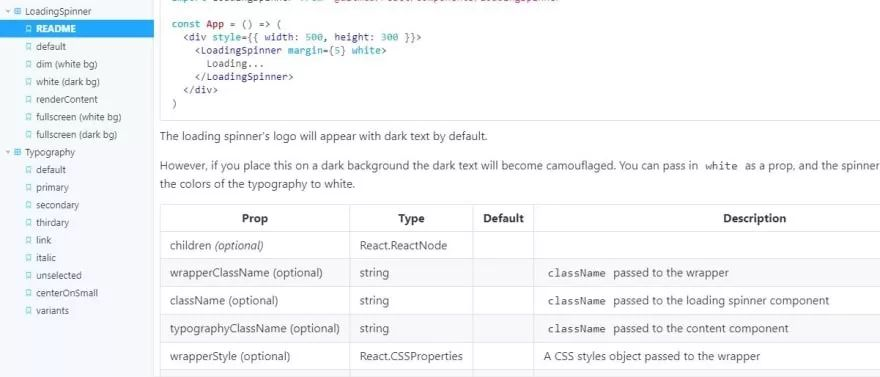 例如,利用 Storybook README 包,我们可以在同一页面上创建 README 文档,同时开发供生产使用的 React 组件。这足以作为常规文档页面: