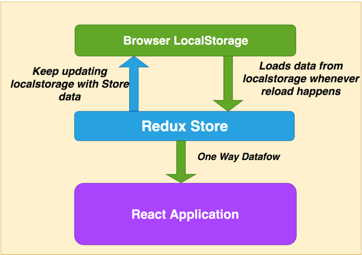 每当重新加载应用程序时,我们使用浏览器localstorage来保存应用程序的状态。我们将整个存储数据保存在localstorage中,每当有页面刷新或重新加载时,我们从localstorage加载状态。