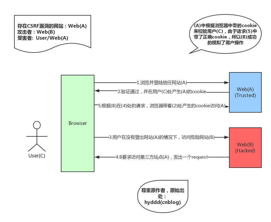 一般在(4)处恶意网站(B)的攻击手段如下(必须是指向A的地址,否则无法带上cookie):