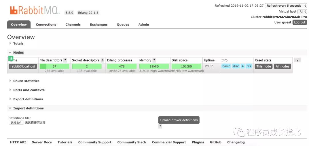 浏览器输入 http://localhost:15672/#/ 默认用户名密码 guest