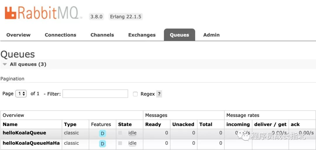 rabbitmqctl list_queues:查看所有队列
