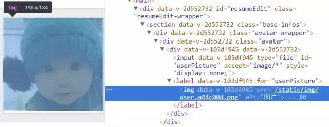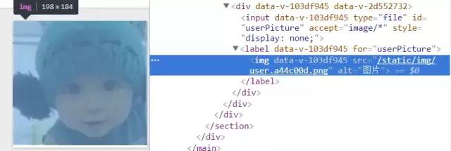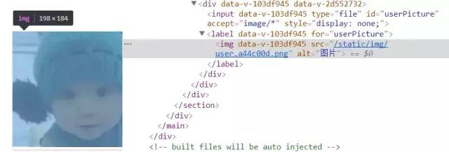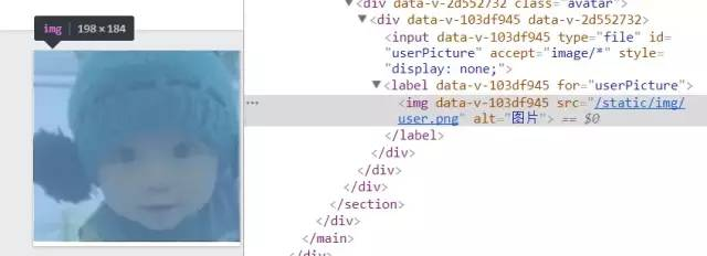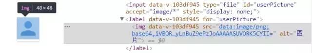 <input type="file" id="avatar" @change="chooseFile($event)" accept="image/*" style="display: none" ><label for="avatar"><img :src="../assets/user_1.png" alt="图片"></label>