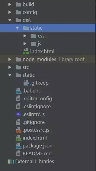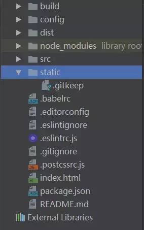 以上就是webpack打包的两种方式,我们重点看第一种。第一种方式,图片是以绝对路径(以/开头的路径就是绝对路径,/指根目录,根目录在本地就是指磁盘,在github上就是指仓库的根目录,在网站上就是指服务器的根目录)进行查找,图片的目录为/static/img,但是我们查看上图项目目录,发现static目录下并没有img目录,也没有图片,那么这里的路径是怎么来的呢?