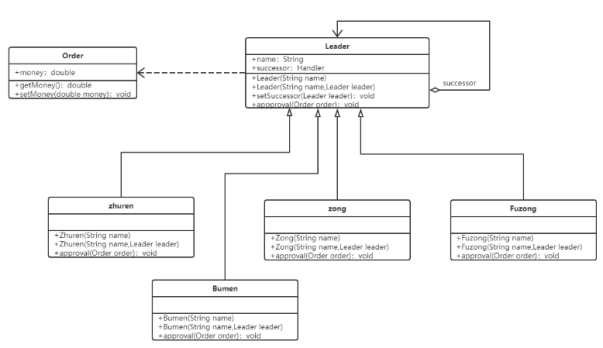 某物资管理系统中物资采购需要分级审批,主任可以审批1万元及以下的采购单,部门经理可以审批5万元及以下的采购单,副总经理可以审批10万元及以下的采购单,总经理可以审批20万元及以下的采购单,20万元以上的采购单需要开职工大会确定。现用职责链模式设计该系统。