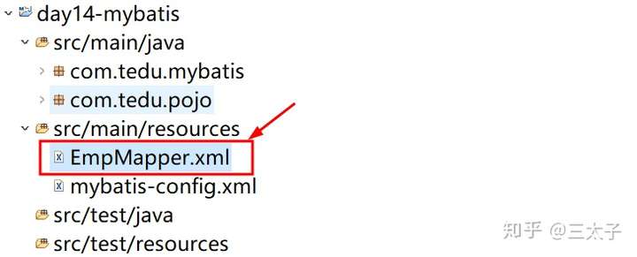 1、在src/main/resources目录下,创建EmpMapper.xml文件 (实体类的映射文件)