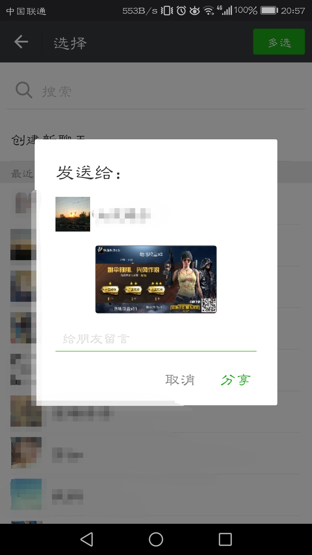 - 在游戏中,通过分享来提高游戏宣传度是常用手段,玩家有时候也希望通过在其他自己管用的社交软件上分享展示自己。如下图