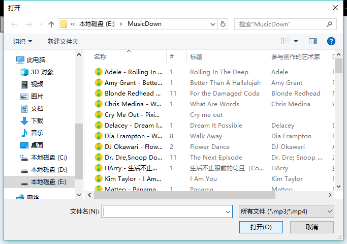 因为作业要求为打开.mp3和.mp4文件,所以我稍作修改,如下所示: