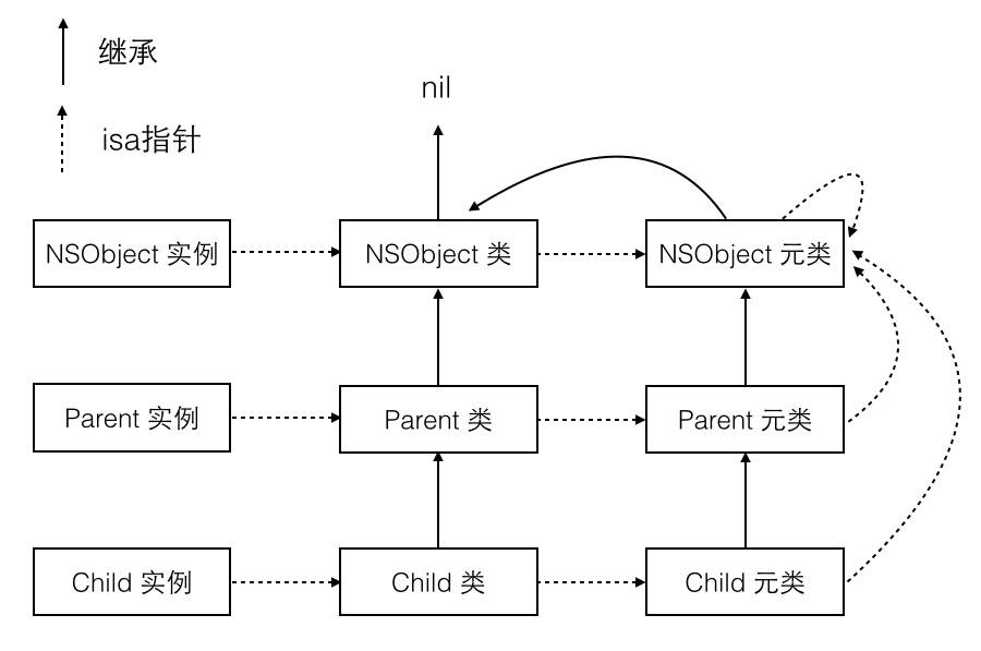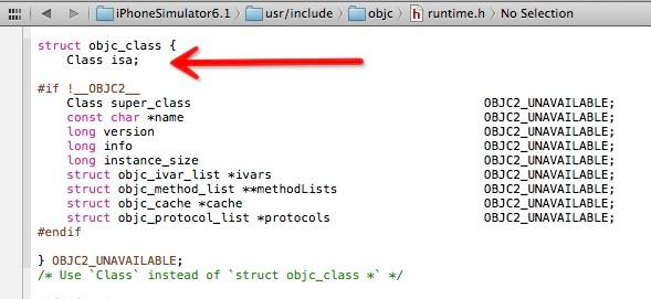 按照面向对象语言的设计原则,所有事物都应该是对象(严格来说 Objective-C 并没有完全做到这一点,因为它有象 int, double 这样的简单变量类型,而 Swift 语言,连 int 变量也是对象)。在 Objective-C 语言中,每一个类实际上也是一个对象。每一个类也有一个名为 isa 的指针。每一个类也可以接受消息,例如代码[NSObject alloc],就是向 NSObject 这个类发送名为alloc消息。