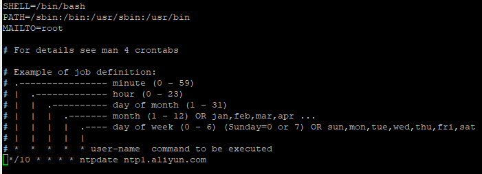*/10 * * * * ntpdate ntp1.aliyun.com