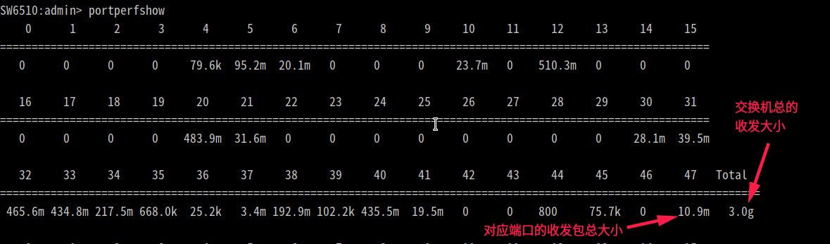 5、显示端口的速率 portperfshow命令